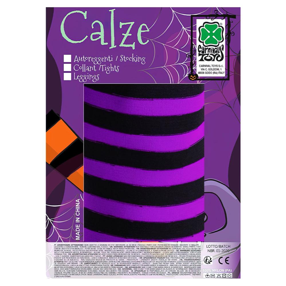 Komplettera halloween klädseln med ett par fina strumpbyxor! Med dessa snyggt lila strumpbyxor med fina ränder i svart blir din halloween utstyrsel riktigt fin. Ett toppenbra alternativ till exempelvis en söt häx utklädnad eller till dina halloweenkalas kläder.