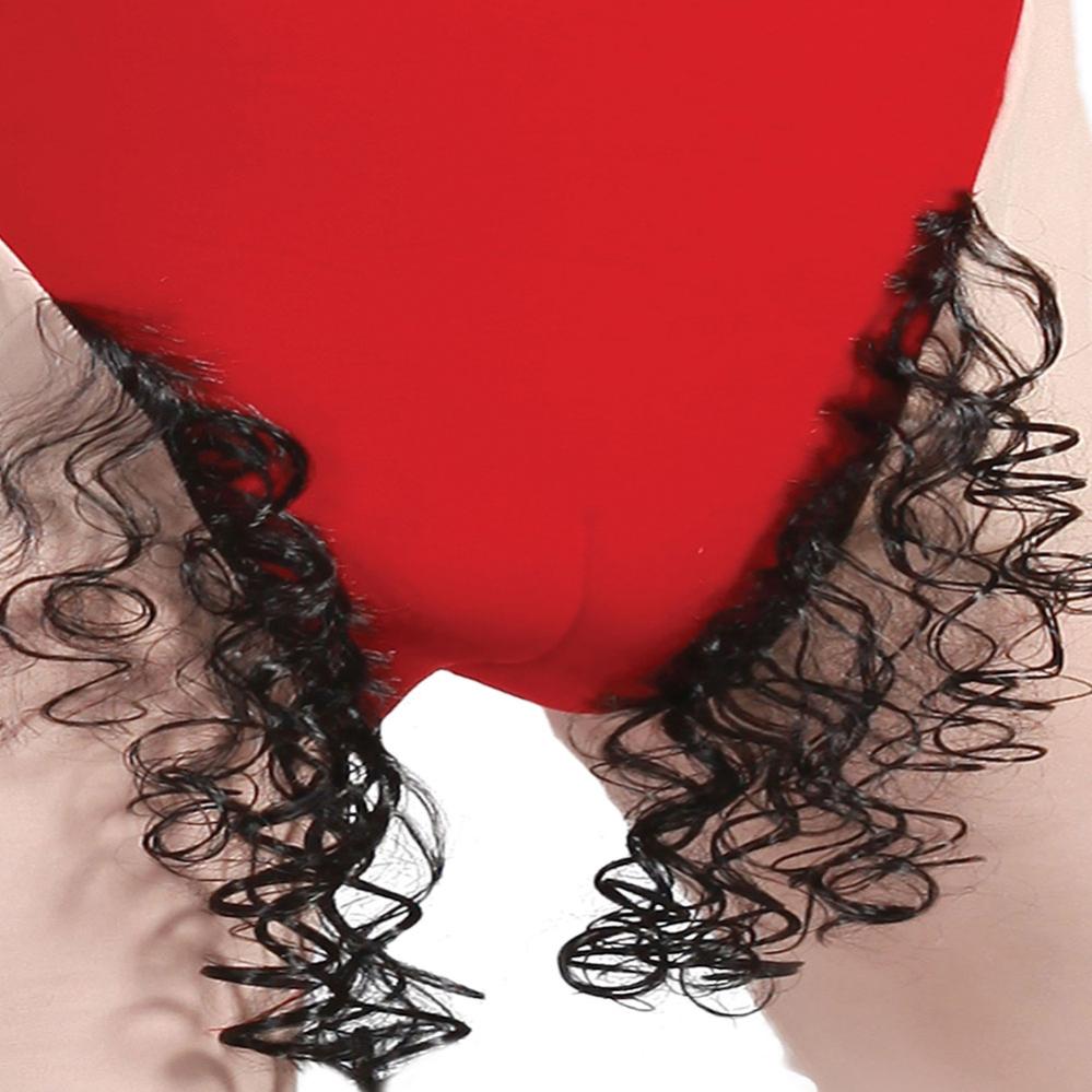 Livräddare Baywatch Maskeraddräkt omfattar en dräkt i form av en röd urringad body med låtsasbröst och utstickande mörkt hår mellan benen. Bodyn har texten "BRAZILIAN LIFE + GUARD " i vitt.