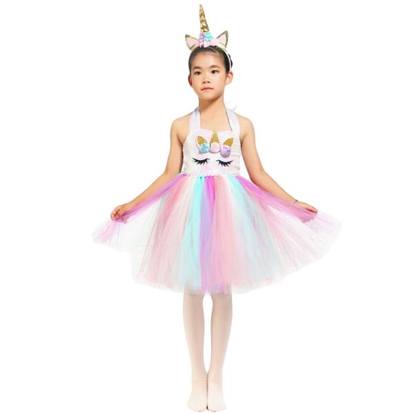 Ge ditt barn en magisk upplevelse med denna enhörningsdräkt. Perfekt som unicorn dräkt för barn, klänningen har fantastiska färger och härliga detaljer. En idealisk enhörningsdräkt med en klänning för barn. Perfekt maskeraddräkt för barn till speciella tillfällen.