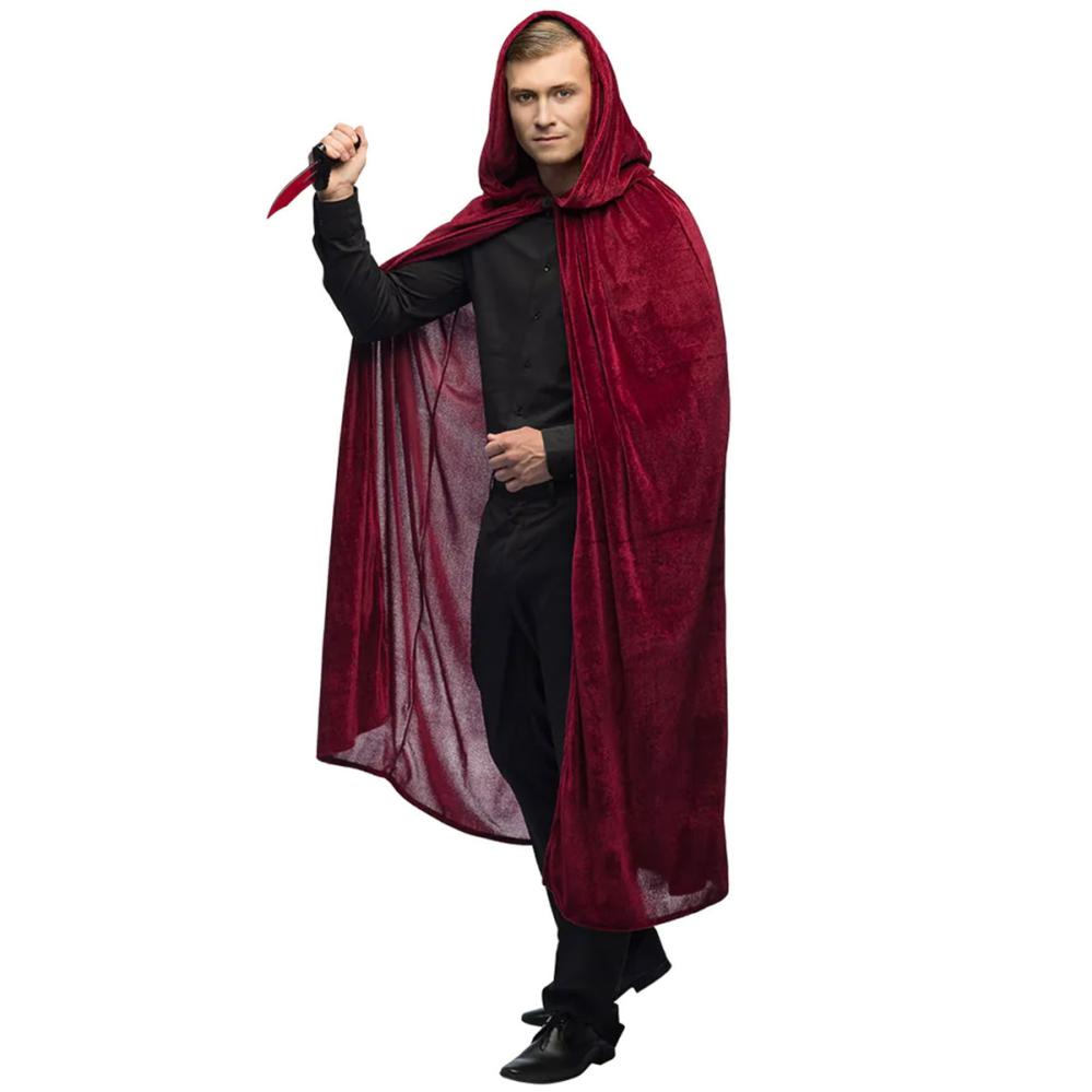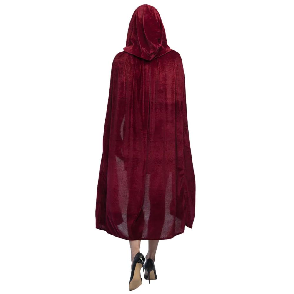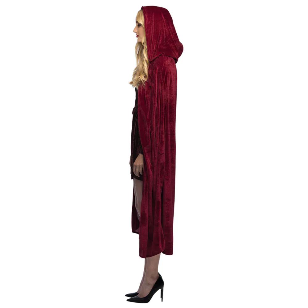 Mantel med Luva Bordeaux är en 170 cm lång bordeauxfärgad mantel med luva i ett sammetsliknande material.