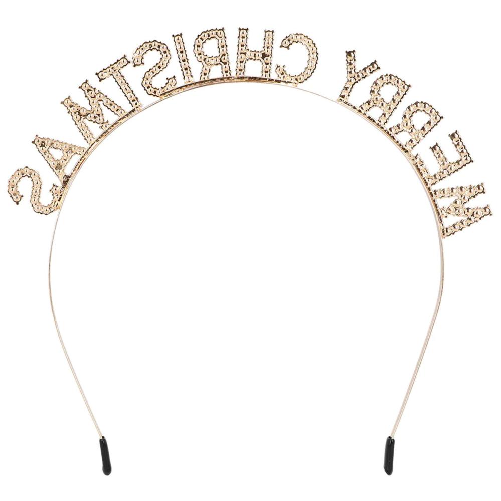 Merry Christmas Juldiadem omfattar ett diadem i roséguld med den uppstickande texten "MERRY CHRISTMAS" i röd strass.