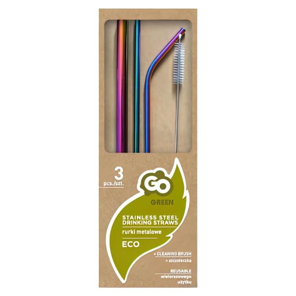 Metallsugrör Set Regnbåge omfattar ett set med återanvändbara sugrör av rostfritt stål i fina regnbågsfärger. Setet innehåller ett rakt, ett böjt och ett tjockt sugrör samt en rengöringsborste. Sugrören är ca 21,5 cm långa och mäter 0,5 samt 1 cm i diameter. Diskas för hand eller i diskamaskin.