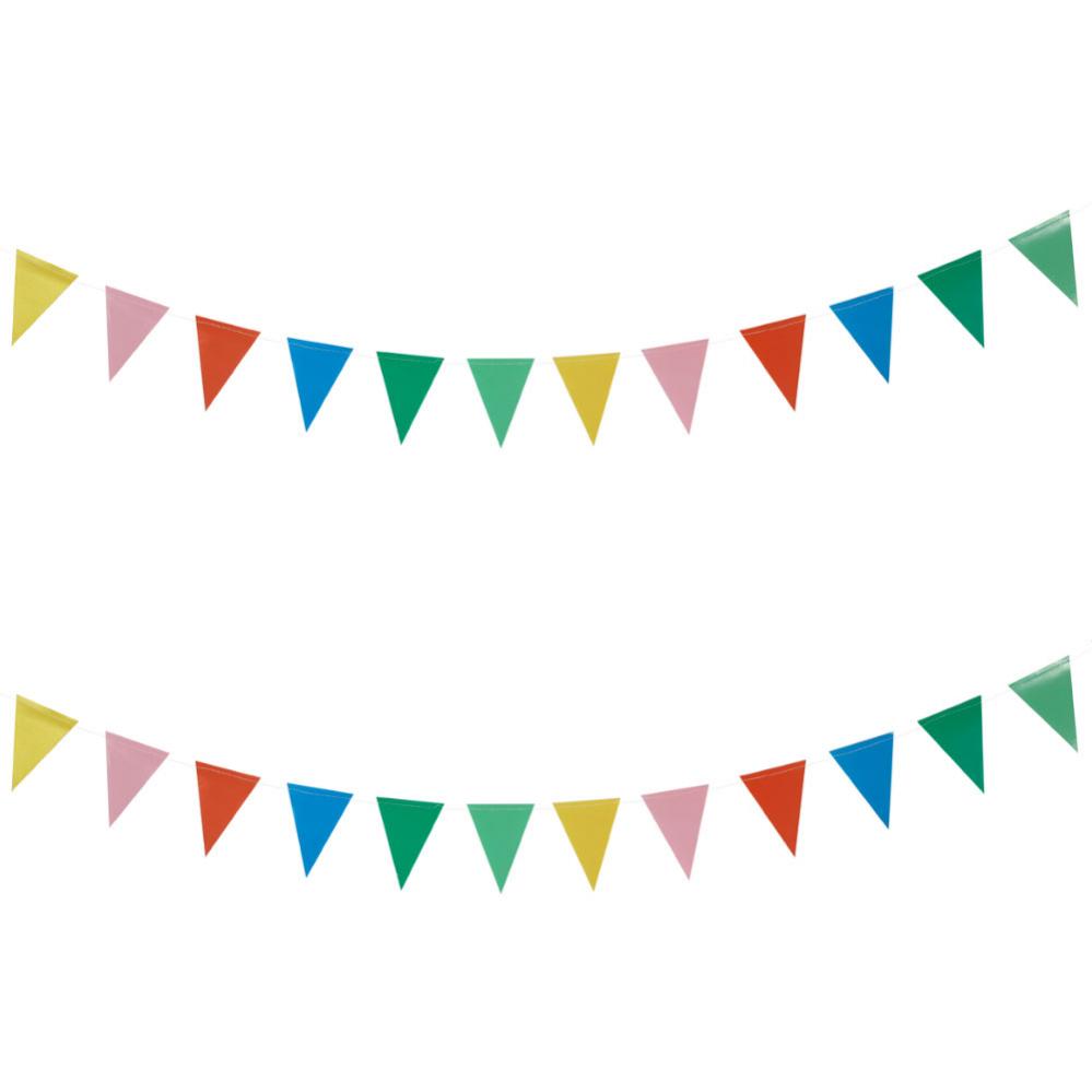 Med denna fina flaggirlang med färgglada vimplar fixar du enkelt en snygg dekoration till årets kalas och födelsedag, en festlig girlang med små flaggor i papper som gör sig bäst som härligt pynt mot väggen, i taket eller kanske i ett träd, en läcker pappersgirlang för alla som vill ha en liten och snygg vimpelgirlang till en toppenrolig fest.