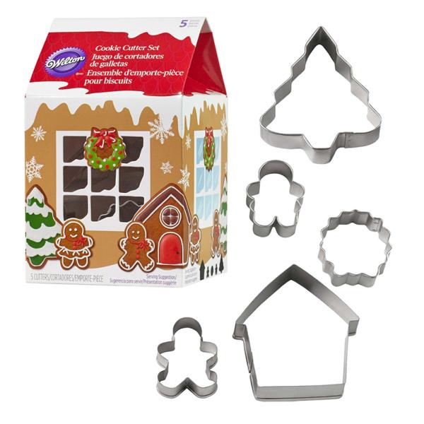 Mini Pepparkaksformar Set består av ett 5 stycken små pepparkaksformar som föreställer en pepparkaksgubbe, en pepparkaksgumma, ett hus, en julgran och en julkrans. Formarna kommer i en söt förpackning som ser ut som en liten mjölkkartong.