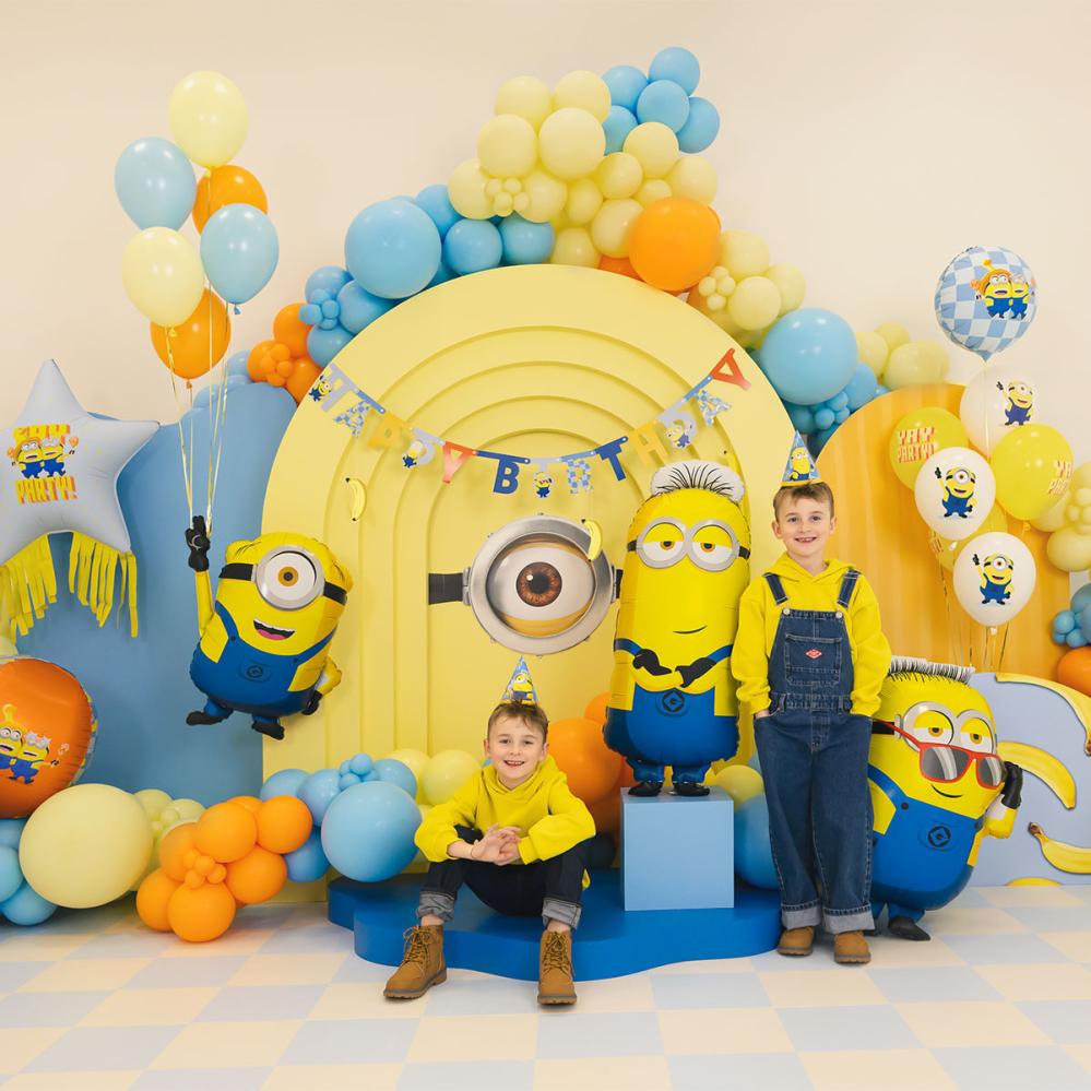 Den här girlangen blir en busig dekoration på ett kalas med Minions tema, ett perfekt kalastillbehör för barn till ett Dumma Mej kalas och andra barnkalas där tillbehör gärna får bjuda på skratt, färg och extra partykänsla.