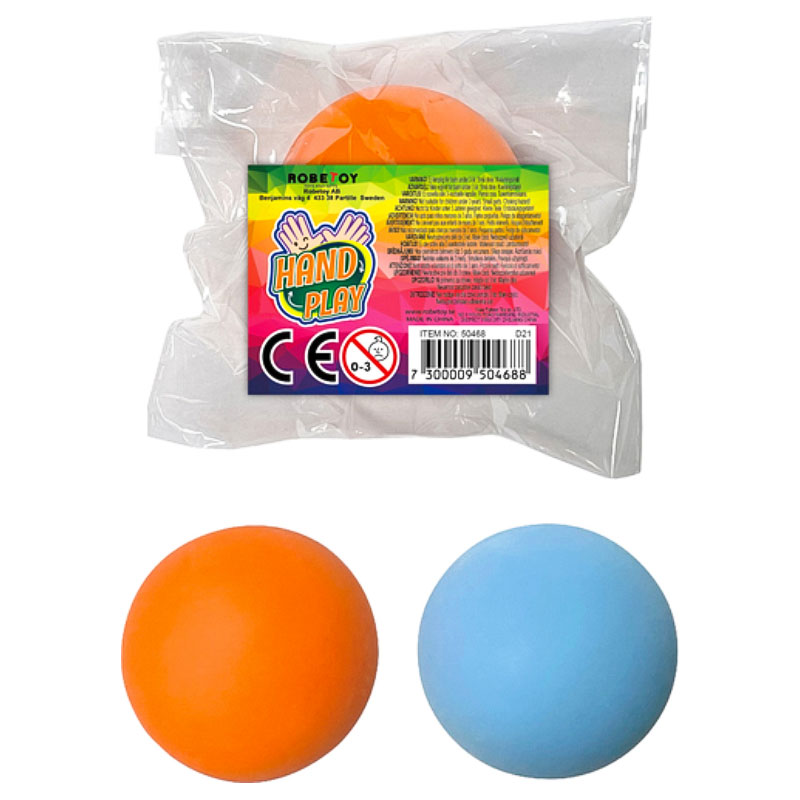 Mjuk Stressboll omfattar en 5,7 cm stor klämboll som känns mjuk att klämma på. Bollen finns i olika färger, vilken färg du får slumpas.