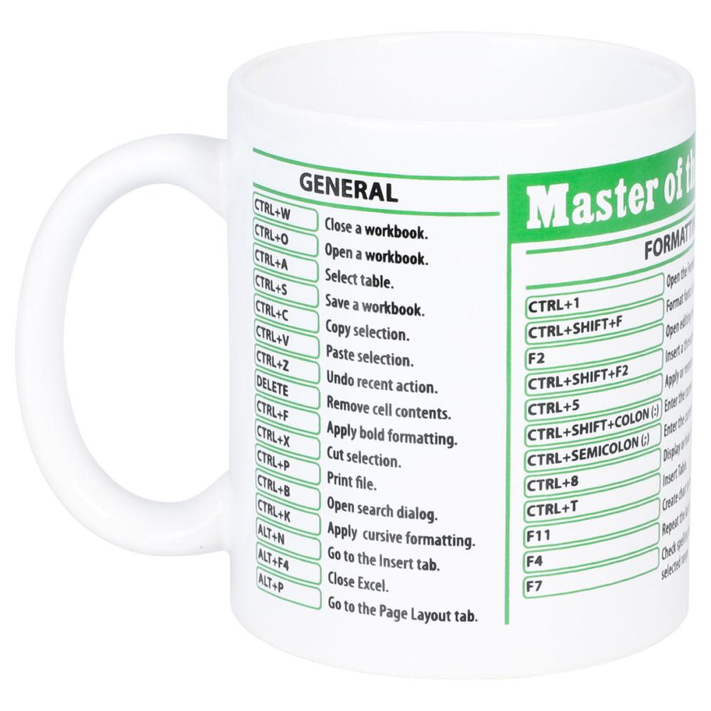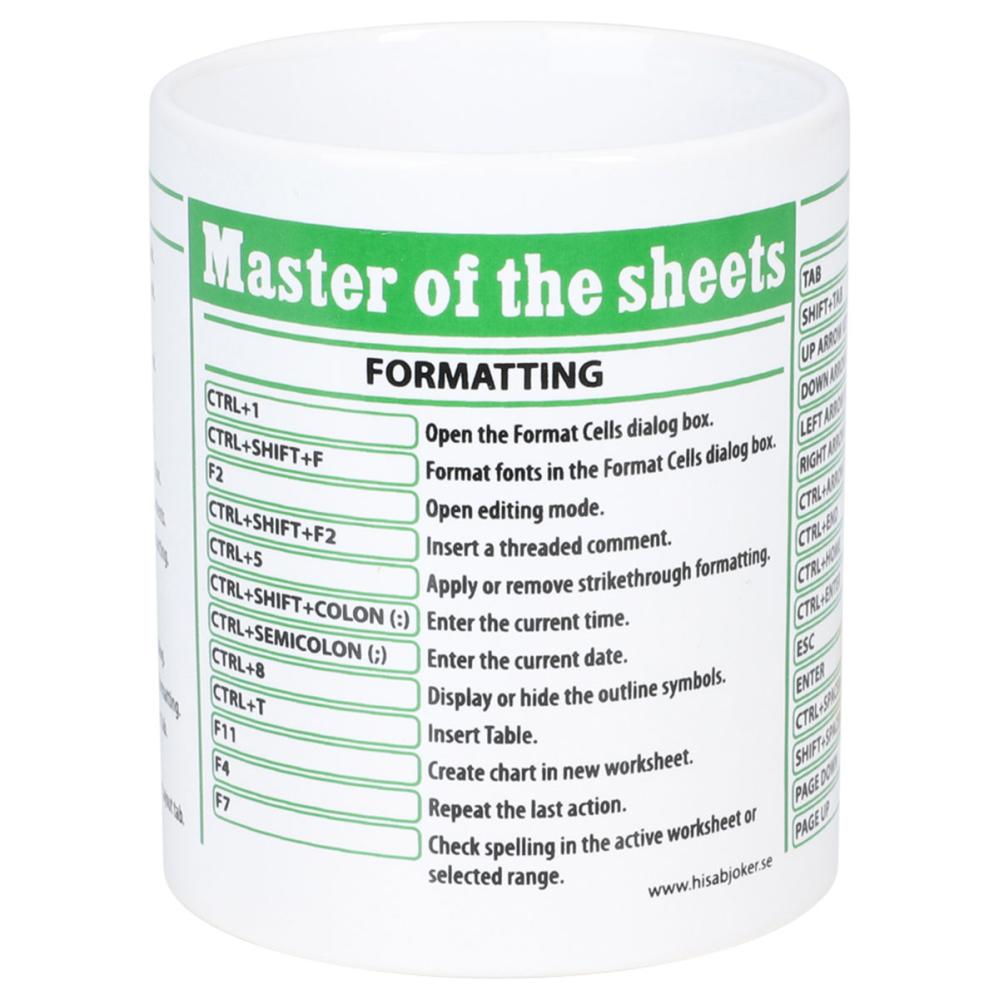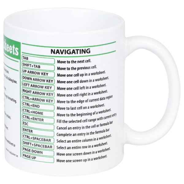 Perfekt som mugg till kontoret när du vill hålla koll på dagen med en snabb överblick av smarta genvägar. Det är en Excel-kaffemugg som får kollegorna att le och en rolig kaffekopp som gör pauserna lite mer produktiva.