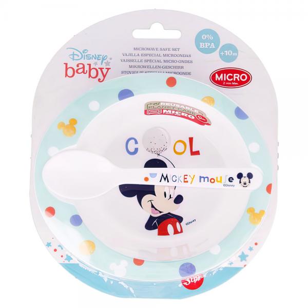 Gulligt Musse Pigg set med sked och skål för små barn! Perfekt matningsset för barn som gillar Disney och musen Musse. Mickey Mouse bebis skål och sked är i BPA-fri plast och tål mikro, smidigt för både baby och vuxen. Musse Pigg plast sked och skål har praktisk design där skeden kan läggas stadigt på plats i skålen. Mickey Mouse set med barnskål och barnsked blir garanterat en ny favorit därhemma!