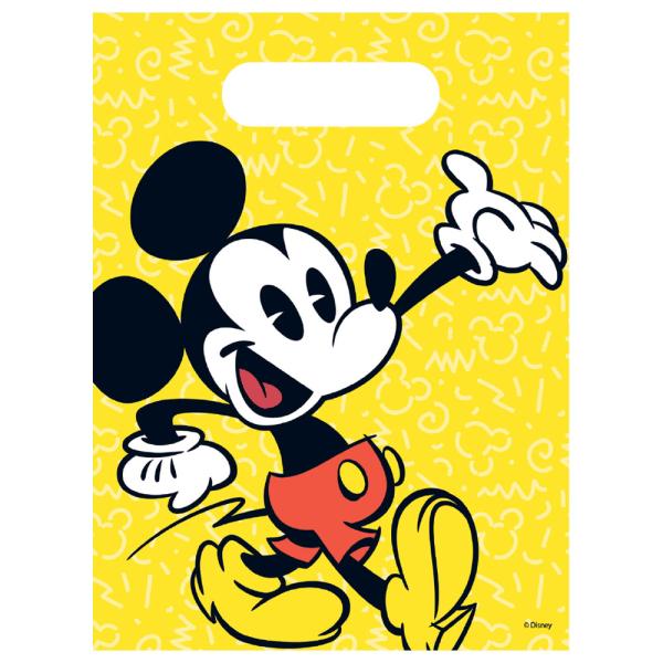 Musse Pigg Super Cool Kalaspåsar består av 6 stycken gula kalaspåsar med snyggt Musse pigg motiv. Påsarna är tillverkad av plast.