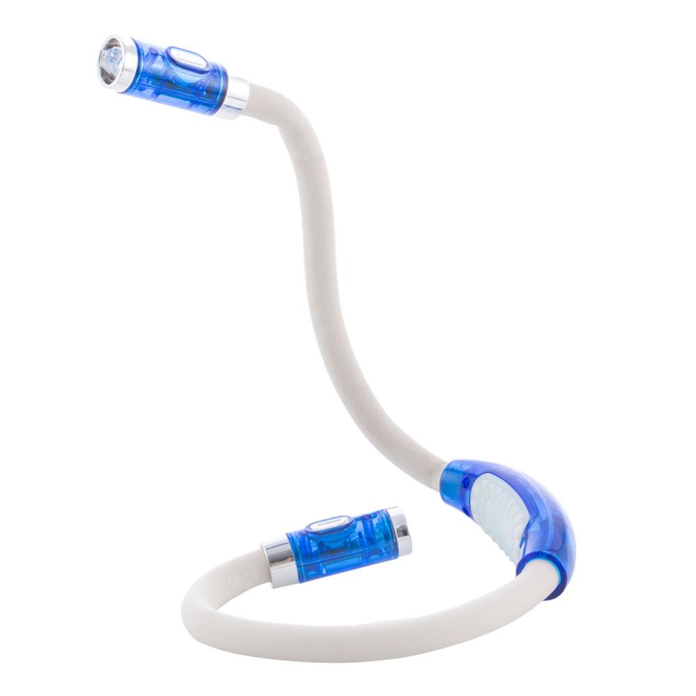 Nacklampa LED omfattar en böjbar nacklampa med två justerbara LED-ljus. LED-ljusen kan tändas individuellt eller samtidigt. Lampan drivs av 2 st AAA-batterier och är ca 56 cm lång.