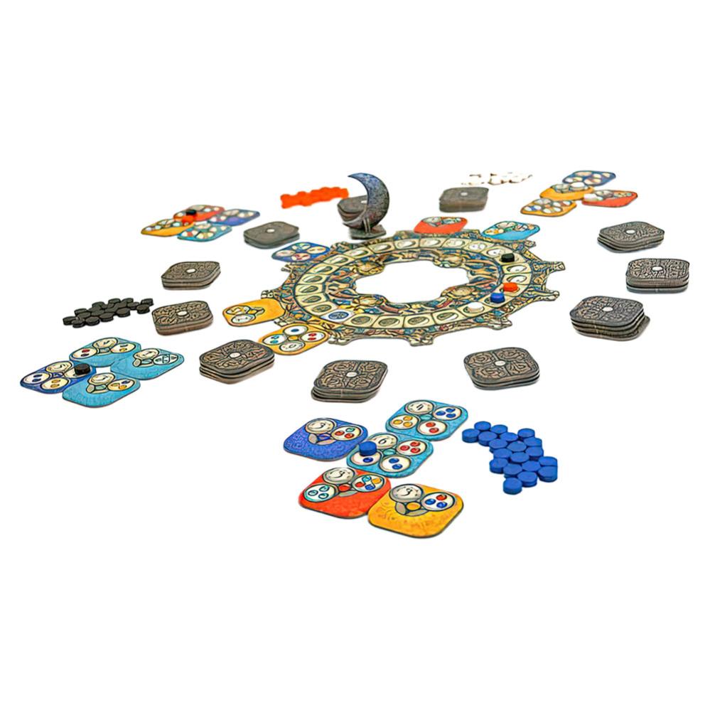 Nova Luna Sällskapsspel omfattar ett abstrakt brickläggningsspel där du planerar framtiden och utvecklar en strategi för att hantera vad månhjulet ger dig. Varje omgång bestämmer du vilken bricka som ska läggas framför dig. Varje ny bricka ger en uppgift du måste lösa. För att göra det måste du placera brickorna i rätt färg vid den uppgift du vill göra, som i sin tur ger nya uppgifter. När en uppgift är löst placerar du en av dina spelmarkörer på den. Den som först blir av med alla sina spelmarkörer vinner.