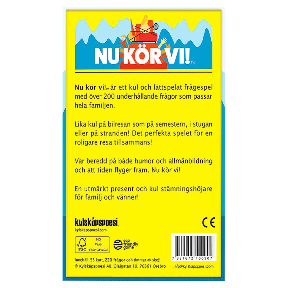 Nu Kör Vi Spel omfattar ett spel med 220 roliga och spännande frågor för hela familjen. "Nu Kör Vi" är ett lättspelat frågespel som passar från 10 år och uppåt.