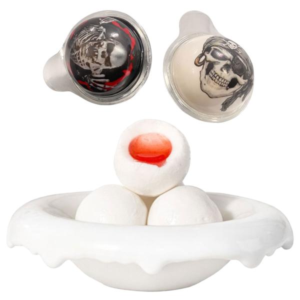Inför halloween blir halloweengodis kul när döskallegodis blandas i skålen, där godis med dödskalle kompletterar ögongodis för halloween. Bjud på bitarna i en skål, dela ut dem under bus- eller godisrundan, eller använd dem som dekoration på bordet.