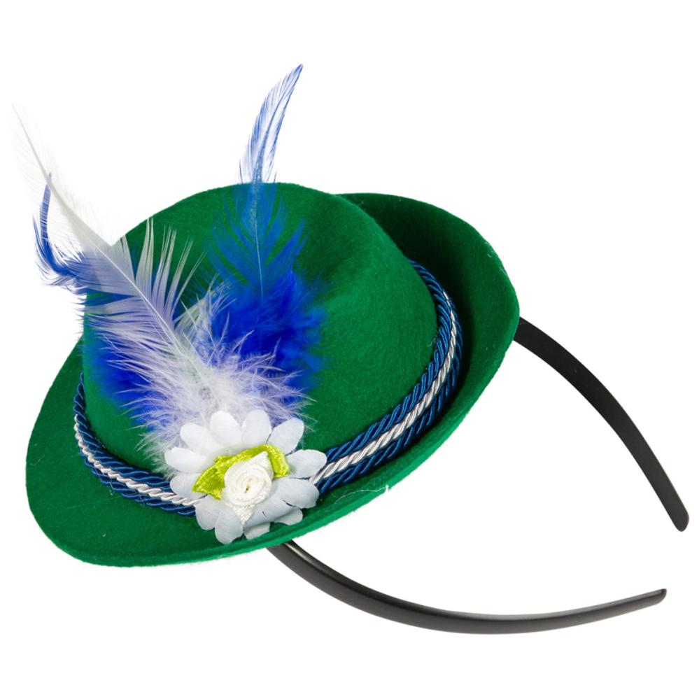 Detta diadem, avsett för maskerad, är prytt med en tyrolerhatt och lämpar sig för oktoberfest. Det bärs bekvämt tack vare den lätta konstruktionen och den mjuka passformen och sitter stabilt även vid rörelse. Det passar både vuxna och tonåringar.