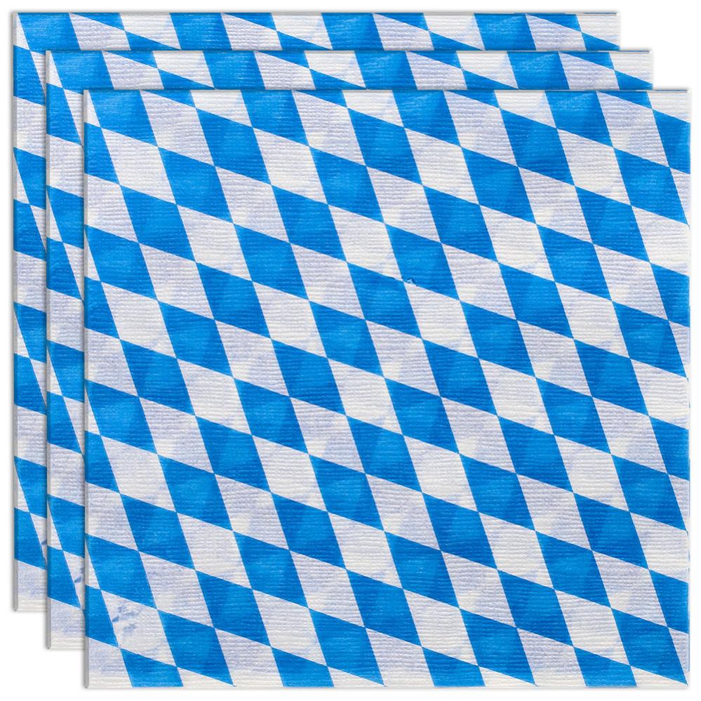 Oktoberfest Engångsservetter Bayersk 100-pack innehåller hundra pappersservetter i bayerskt mönster med vita och blå romber.
