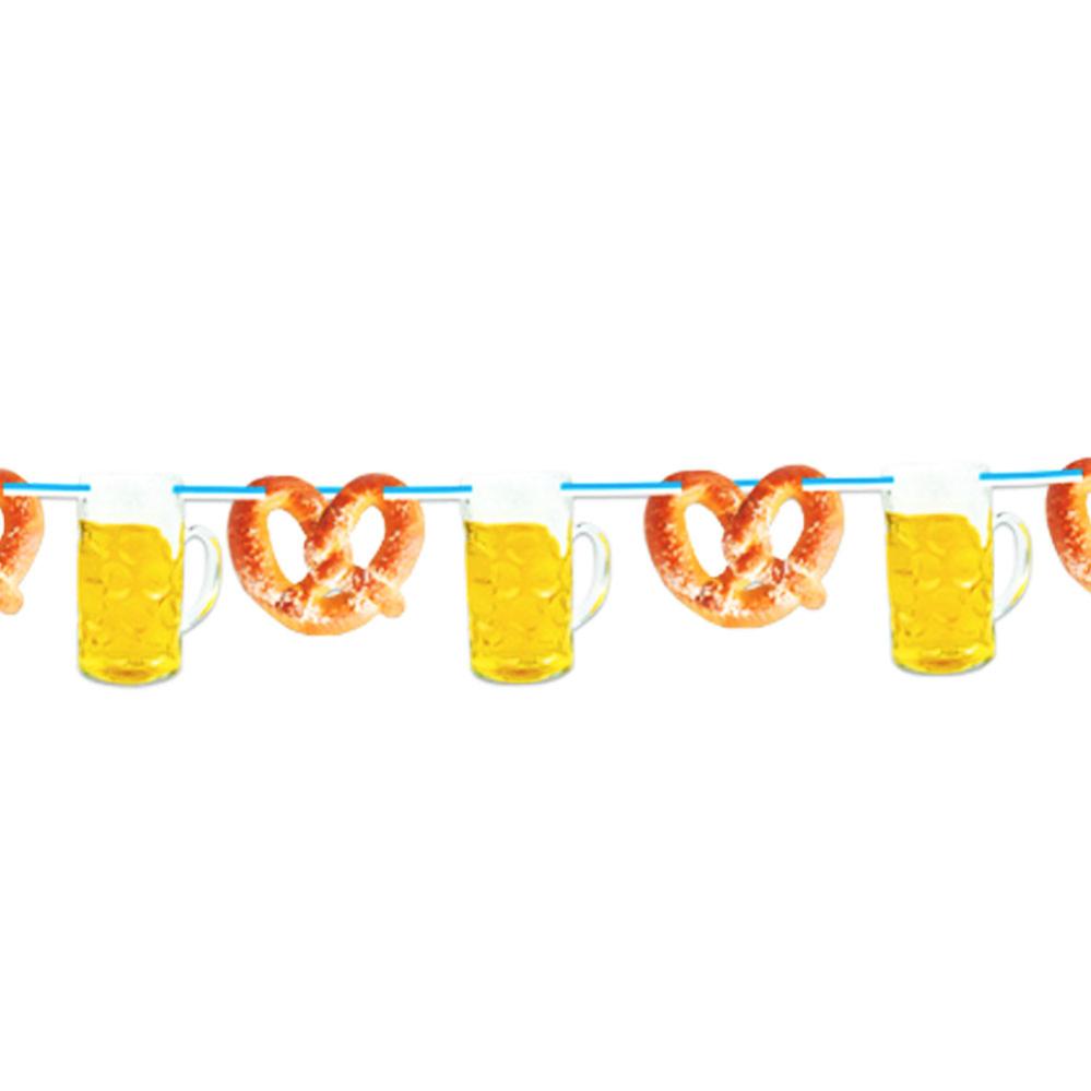 Öl och kringlor är något som hör Oktoberfest till så denna fina girlang med hängande ölglas och kringlor blir en helt perfekt dekoration till firandet. Den sprider en trevlig stämning och får vem som helst på gott festhumör. Riktigt fin Oktoberfest girlang som blir alldeles utmärkt för dig som söker fina tillbehör till Oktoberfest.