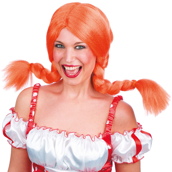 Orange Peruk Med Flätor kommer i orange färg med två tjocka flätor.