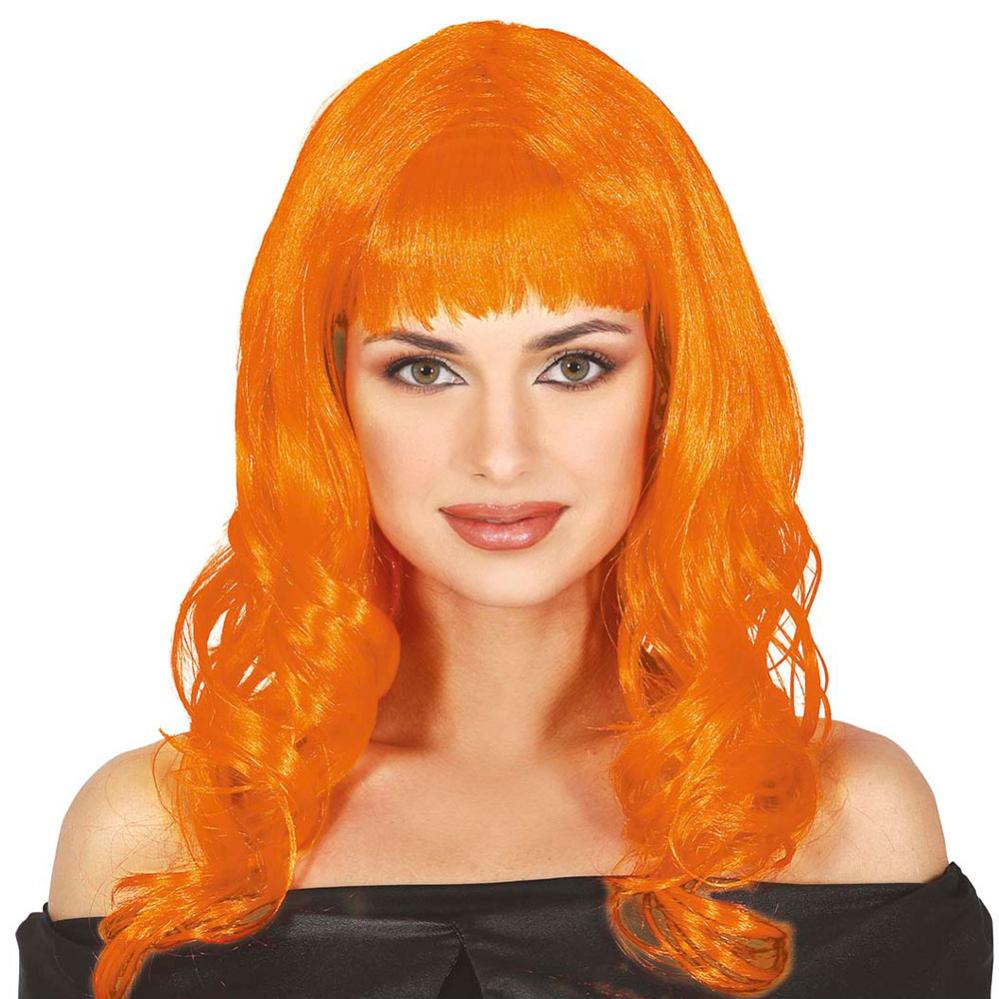 Orange Peruk med Lockar & Lugg omfattar en syntetisk orange peruk med lockar och lugg.