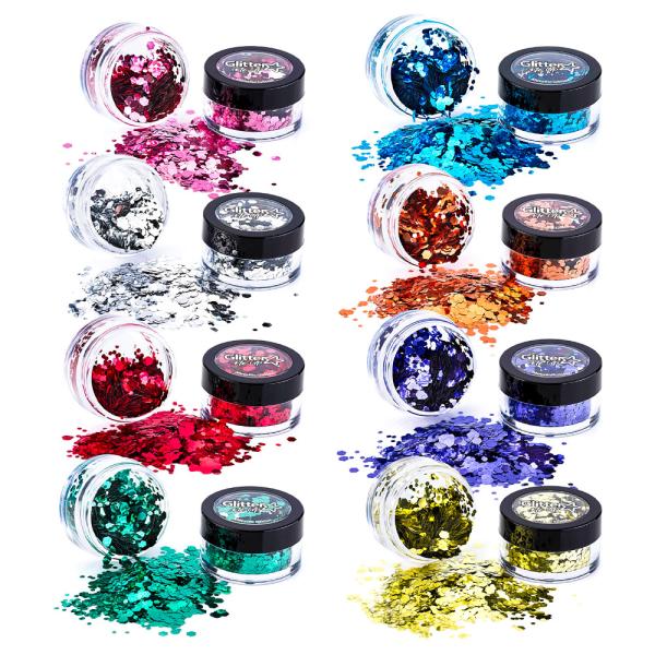 Skimrande chunky lös-glitter med häftig metallic-effekt som snabbt och enkelt gör din sminkning riktigt snygg! Med detta kropps- och ansiktsglitter kan du enkelt addera snyggt metallic-skimmer till din sminkning på bara några minuter, applicera glittret med hudlim eller PaintGlows Glitter Fix Gel och se hur du omedelbart får till riktigt imponerande glitter-effekter. Detta kropps- och ansiktsglitter är med andra ord helt perfekt för alla som vill skapa en enkel, men mycket effektfull glitter-sminkning!