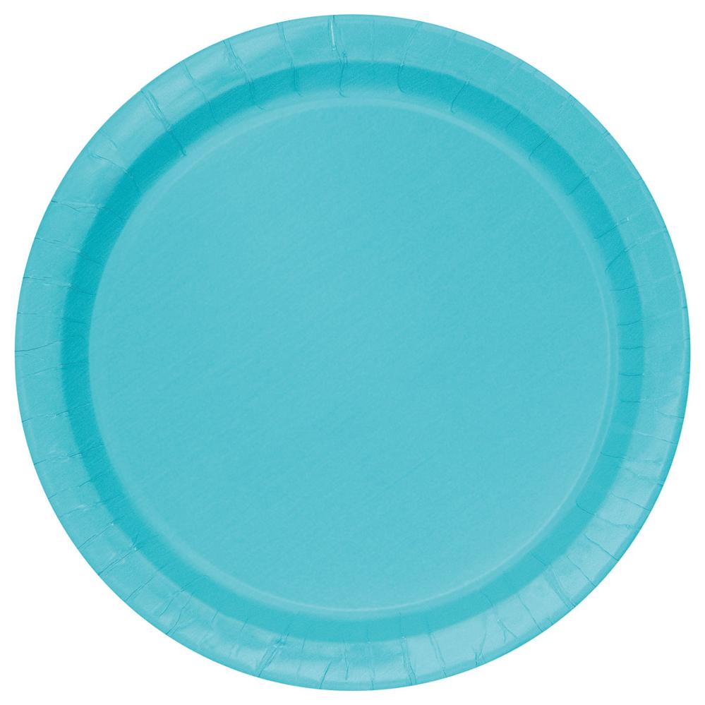 Pappersassietter Turkos 20-pack innehåller tjugo engångsassietter i turkos.