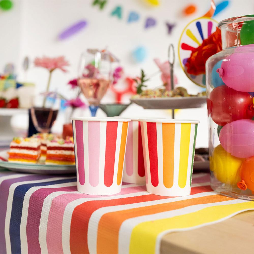 Pappersmuggar Stripetastic 8-pack är färgglada kalasmuggar som livar upp varje fest. Det är perfekta pappersmuggar till kalas och smarta kalastillbehör när du vill skapa ett lekfullt tema med muggar till barnkalaset.