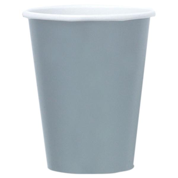Pappmuggar Silver omfattar ett 8-pack engångsmuggar i matt silvergrå färg med vit insida. Muggarna är tillverkade i papp, rymmer ca 250 ml och är ca 8,5 cm höga.