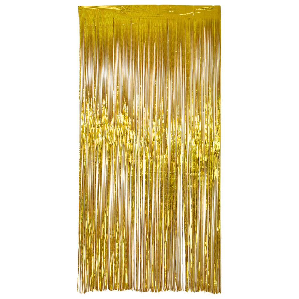 Party Draperi Iriserande Guld 200x100 cm består av ett festligt dörrdraperi med långa och tunna remsor i en skimrande guldig färg som skapar en holografisk effekt.