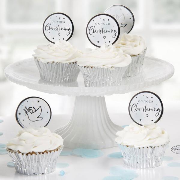 Fina party picks för dop som gör det enkelt att få till en festlig cupcake- eller tårt-dekoration. Med en ljusblåa och silvrig design passar dessa partypinnar riktigt snyggt in på varje dop. Riktigt snygga party picks som höjer hela dukningen!