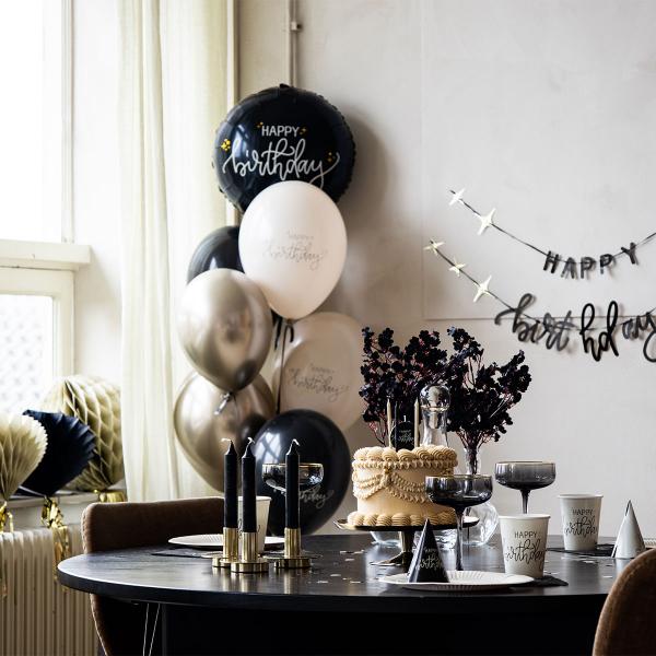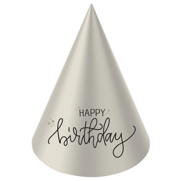 Partyhattar Happy Birthday Svart/Krämvit 6-pack