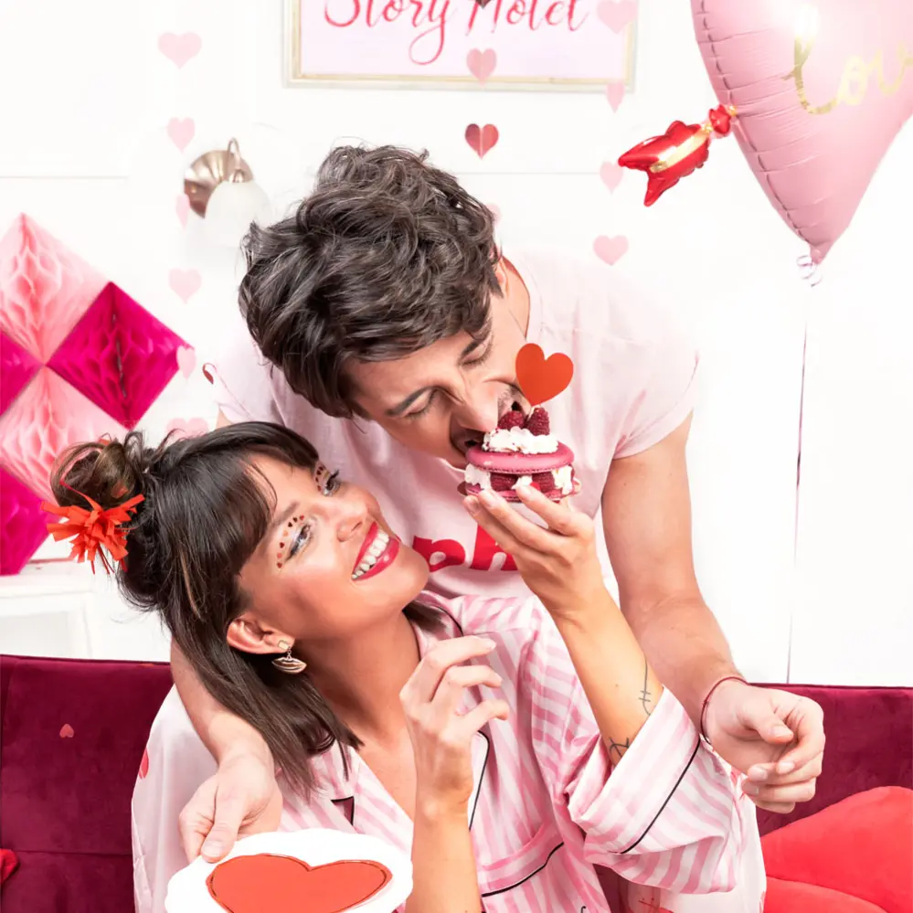 - Partypicks med hjärtan i rött.