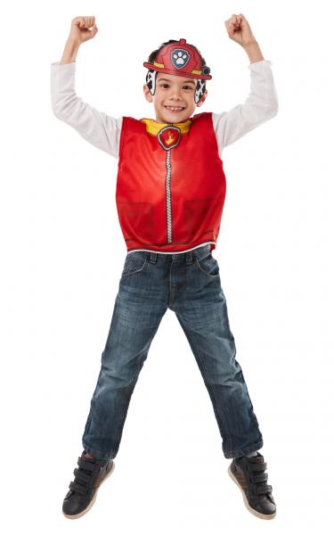 Paw Patrol Dräkt Marshall Väst barn är en röd väst med tryckta Paw Patrol detaljer. Ingår även en mask med motiv av brandhjälm och hundöron.