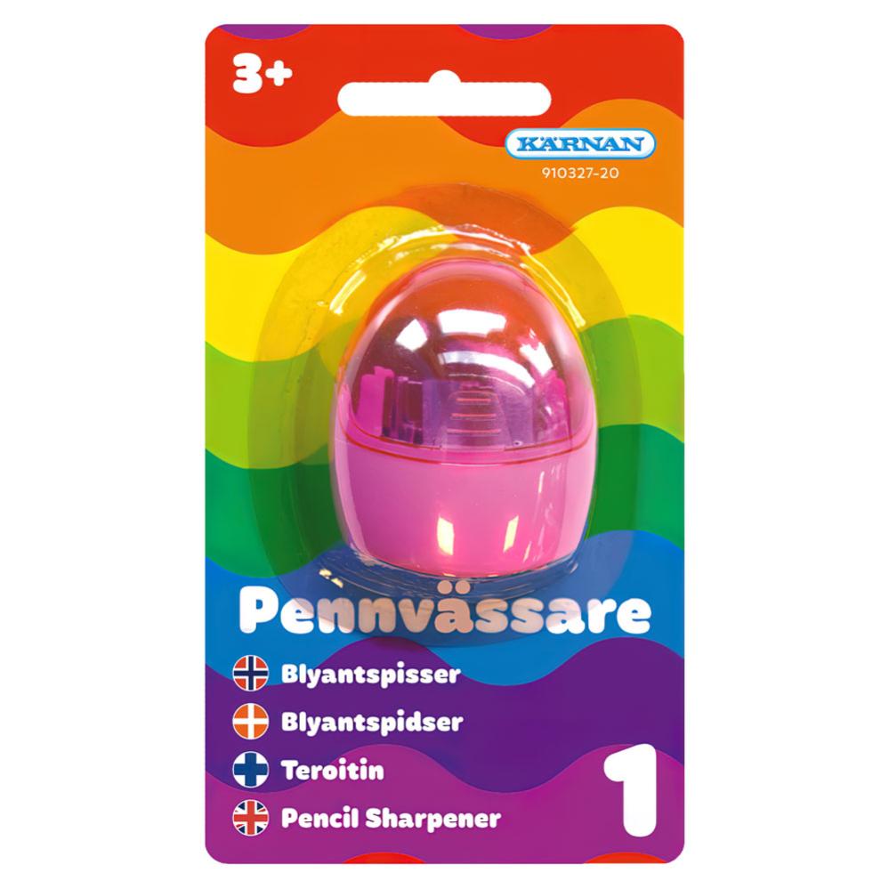Pennvässare omfattar en 5 cm stor pennvässare av plast med två vässare i olika storlekar för olika sorters pennor. Pennvässaren har även en behållare som samlar upp spånrester. Finns i olika färger, vilken färg du får slumpas.