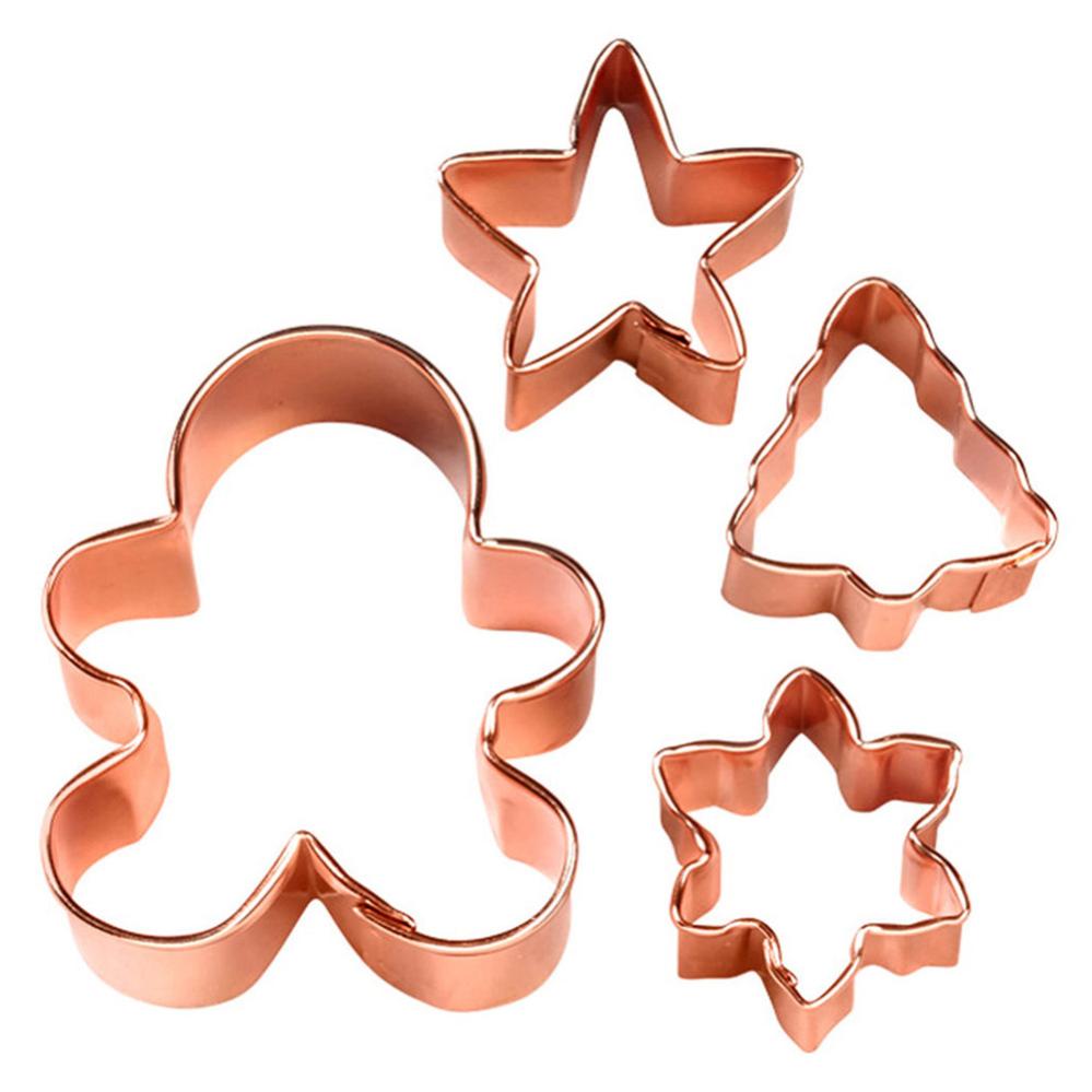 Pepparkaksformar i Presentförpackning består av ett 4-pack kopparpläterade pepparkaksformar som föreställer en pepparkaksgubbe, en snöflinga, en stjärna och en julgran. Ingår även ett litet häfte med pepparkaksdegs recept. Allting kommer i söt presentförpackning.