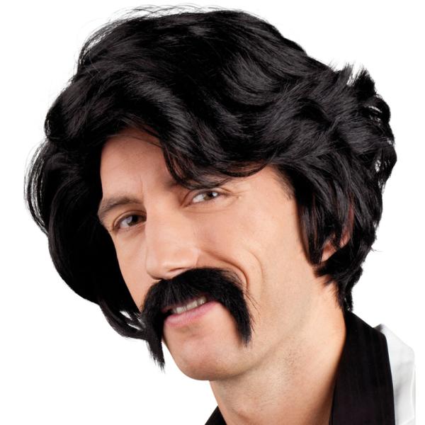 Gör din maskerad utklädnad lite extra snygg med hjälp av en tuff peruk och en matchande fake mustasch! Med den här svarta peruken och den matchande låtsas mustaschen kan du på ett enkelt men väldigt effektfullt sätt komplettera din maskerad utklädnad.