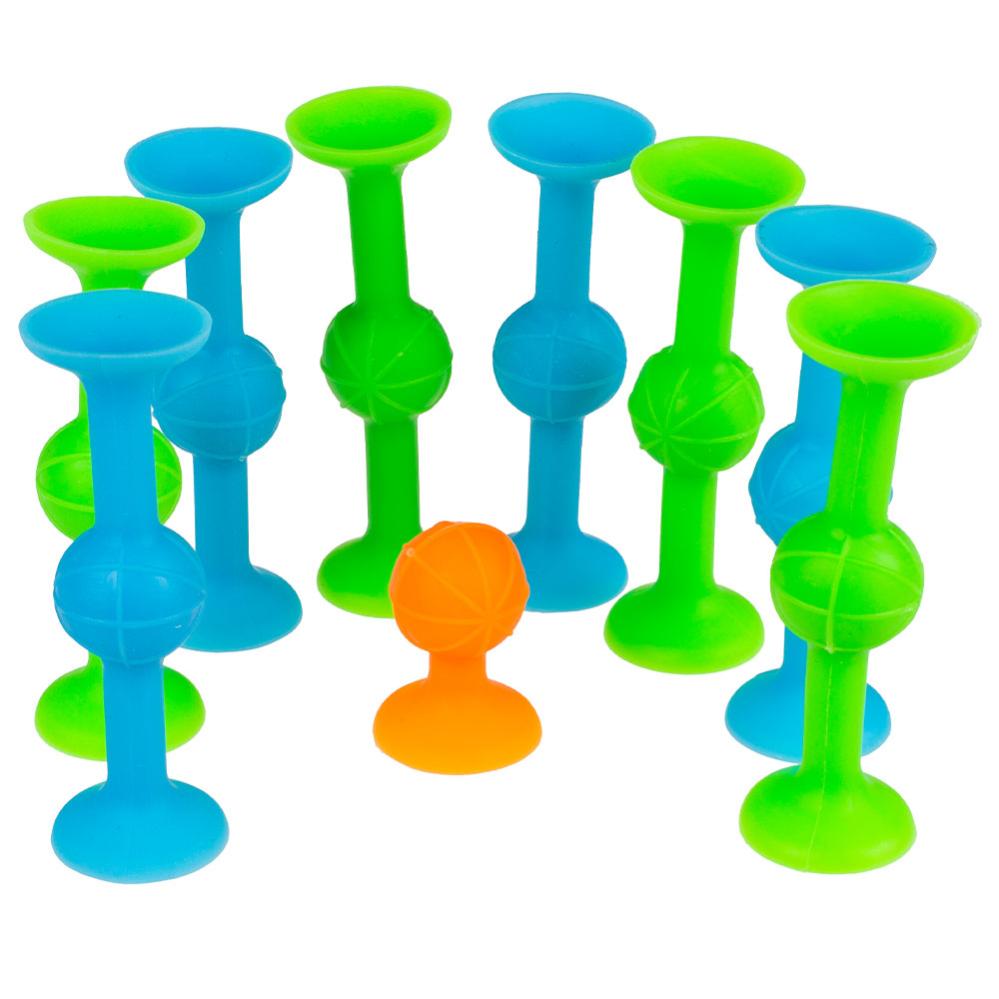 Pilar med Sugkoppar Spel omfattar omfattar ett pilkastningsspel med pilar som har sugproppar. Först sätts den orangea sugproppen fast och sedan turas ni om att försöka pricka så nära den oranga pilen som möjligt.