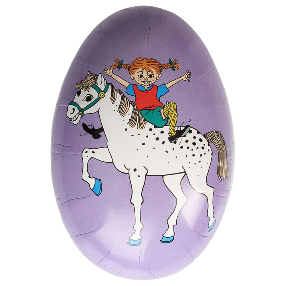 Pippi Påskägg 8x12 cm är ett lila påskägg med motiv av Pippi.