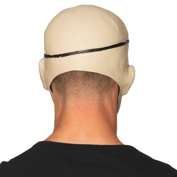 Pirat med Ögonlapp Mask omfattar en latexmask för vuxna. Masken föreställer en skallig pirat med skäggstubb, ett långt ärr över ena ögat samt en svart ögonlapp. Den täcker hela huvudet och har hål för ena ögat, munnen, näsan och öronen.