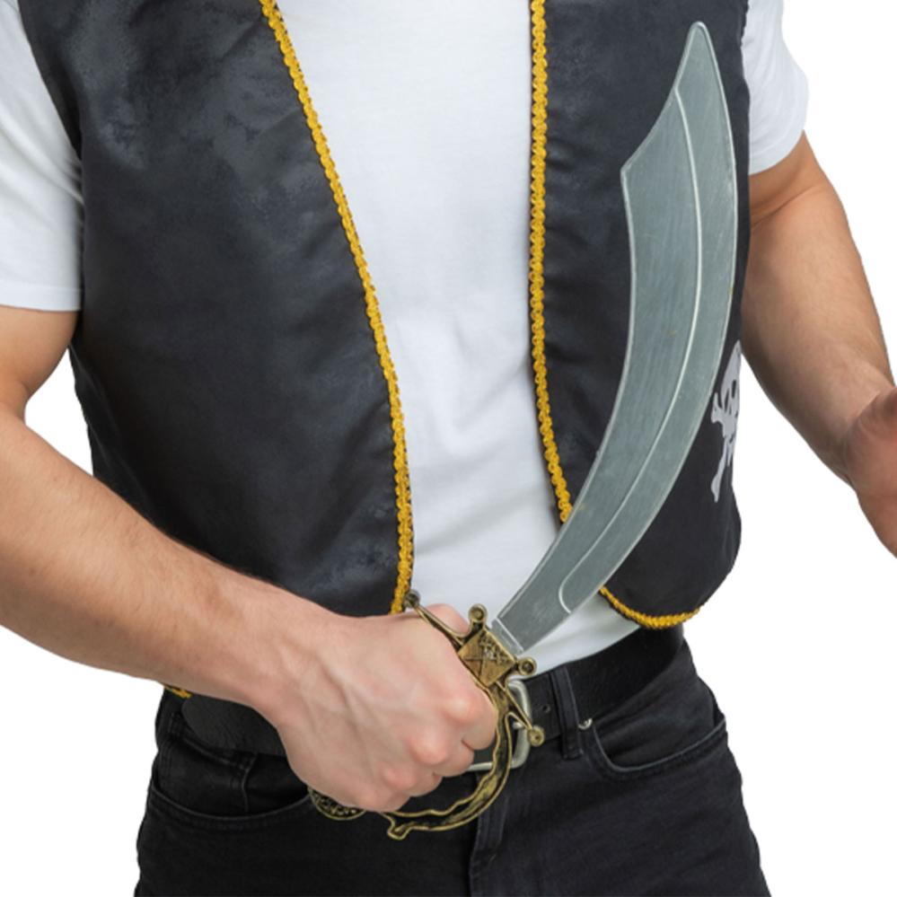 Detta pirattillbehör kompletterar dräkten vid temafest och scenlek och passar även i fotohörnan. Till maskeraden bär piraten gärna svärdet, särskilt på halloween då dräkten blir komplett. På en piratmaskerad fungerar rekvisitan för lek och fotografering utan att ta över dräkten.
