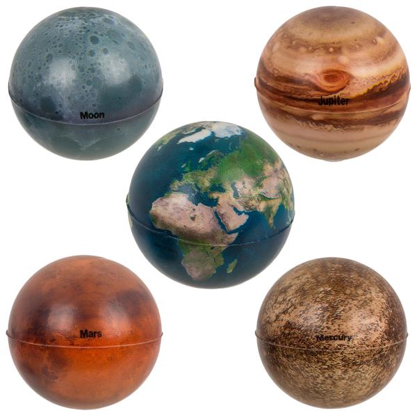 Planet Stressbollar omfattar små bollar i skummaterial som ser ut som planeterna i vårt solsystem. Finns i nio varianter, vilken du får slumpas.