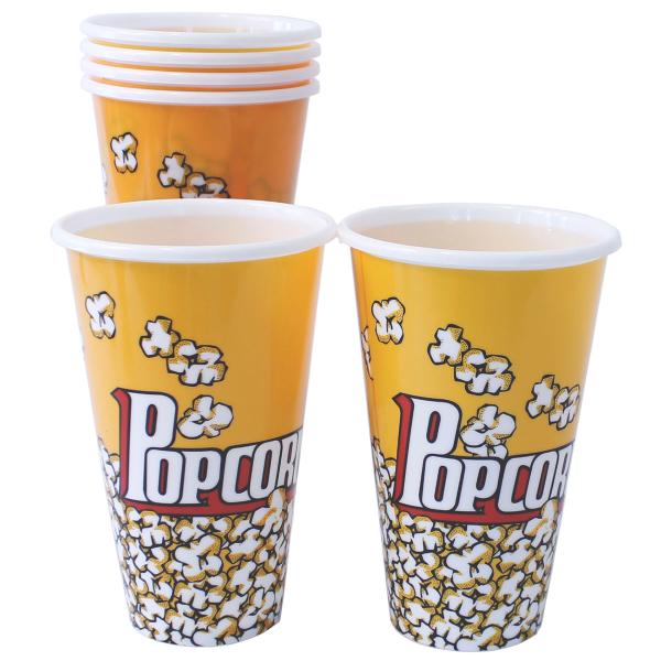 Popcornskål Retro 11,5 x 18 cm omfattar en popcornskål som är tillverkad i hållbar plast och vars utsida pryds av en livlig retrodesign med gul bakgrund, popcorn och den färgstarka texten "Popcorn" i vitt och rött.