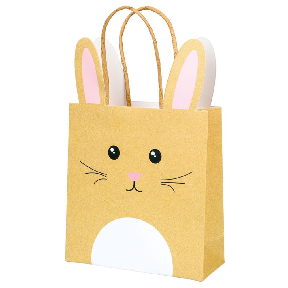 Presentpåse Kanin Kraft 12x6x15 cm är en presentpåse i en beige nyans med motiv av en kanin med vita och rosa detaljer. Påsen har uppstickande kaninöron och vita bärhandtag.