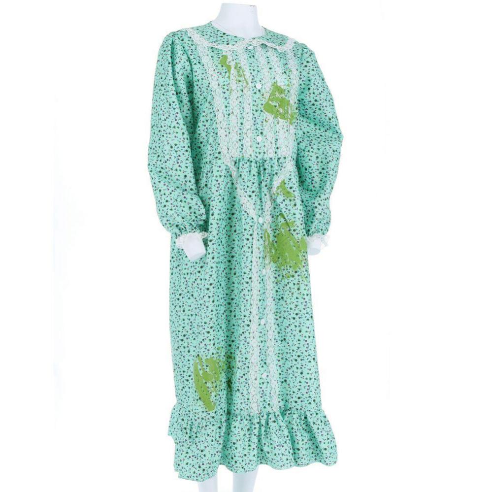 Regan Klänning The Exorcist omfattar en mintgrön klänning med blommönster och gröna fläckar, inspirerad av Regans klänning från filmen "The Exorcist".