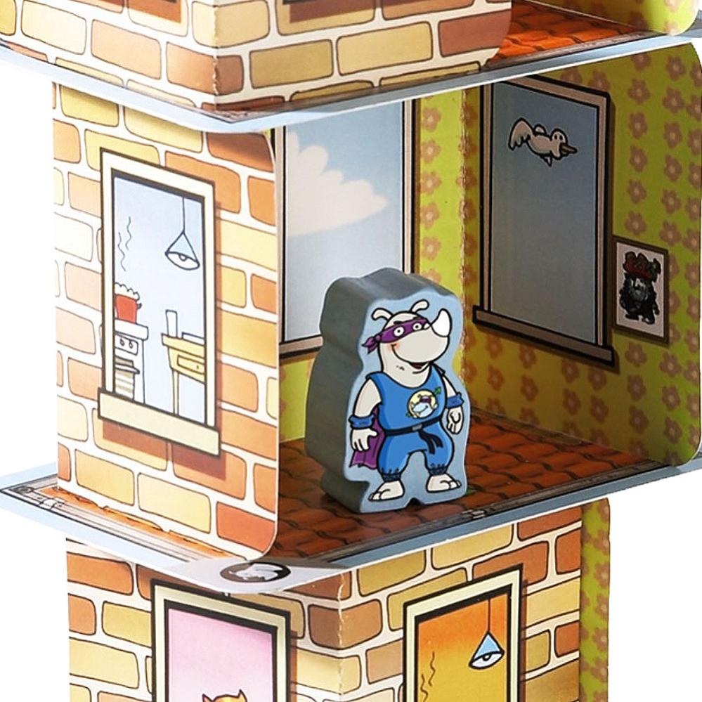 Rhino Hero, den modiga noshörningen, är här för att klättra upp i det höga huset och behöver nu din hjälp med att bygga ett så säkert torn som möjligt i detta roliga spel för barn. Med hjälp av kort bygger ni huset våning för våning, ett spännande sällskaps-spel och kort-spel för spelsugna barn. Rhino Hero barn-spel och familje-spel spelas lika gärna hemma som på resande fot.