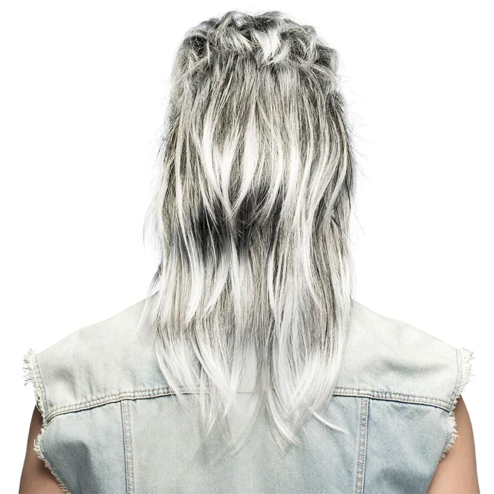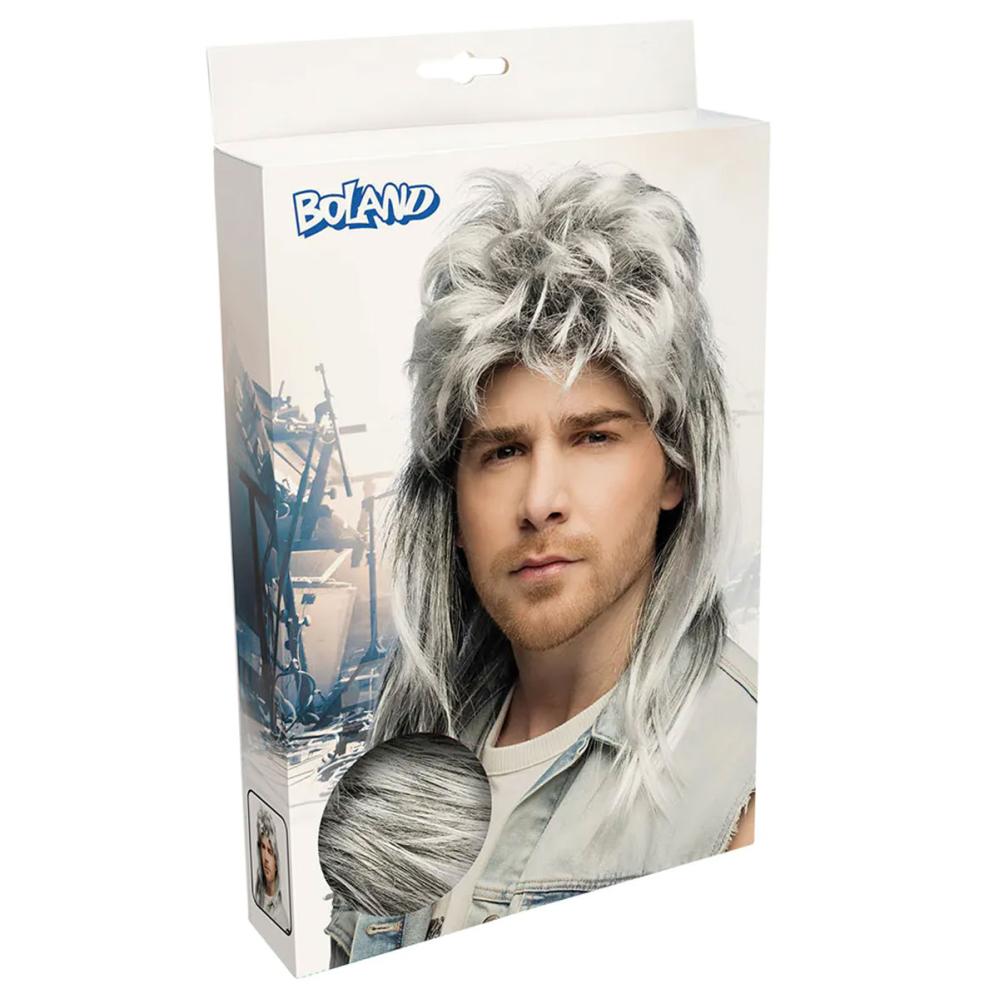 Denna rockperuk har ett mjukt fall och naturlig glans. Till en maskerad med tema rock ger den grå peruken, lång och med lugg, ett autentiskt uttryck. Den fungerar på en rockmaskerad och vid scenframträdanden och den är lätt att forma.