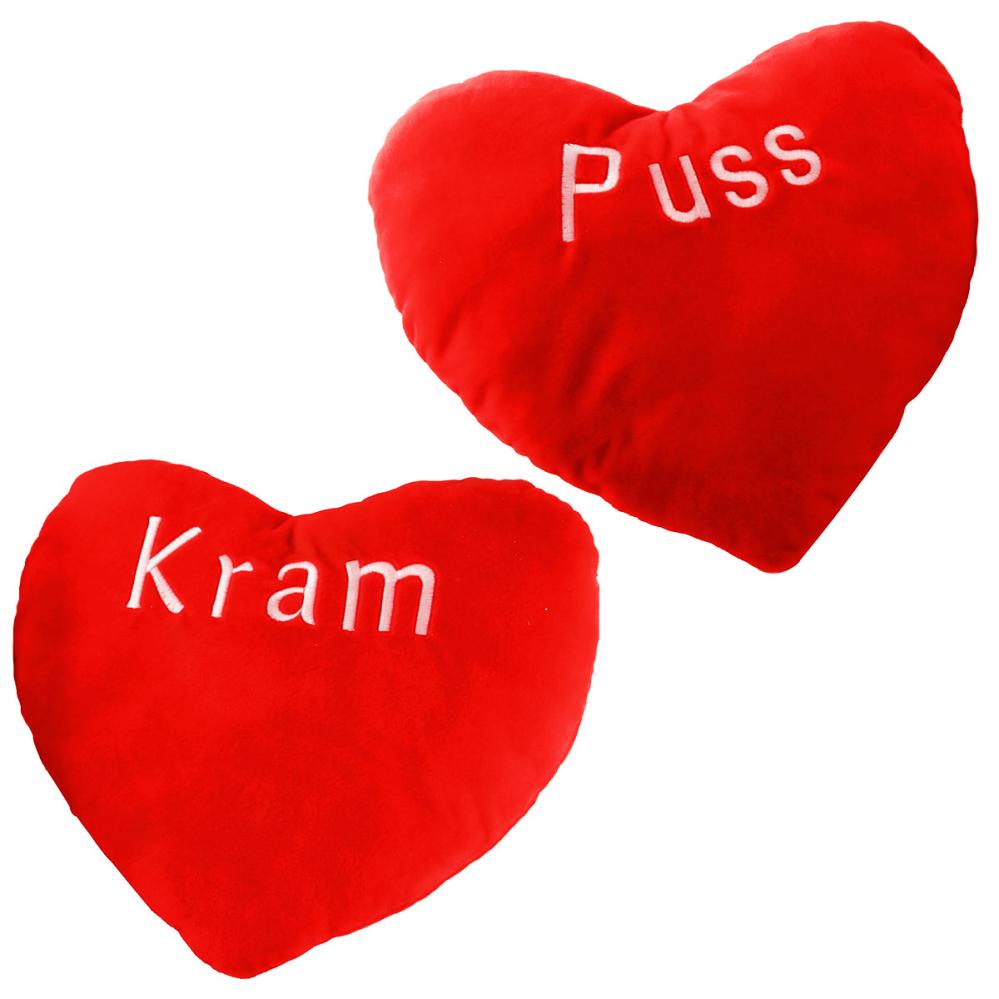 - Hjärtformad kudde med texten "Puss" eller "Kram"