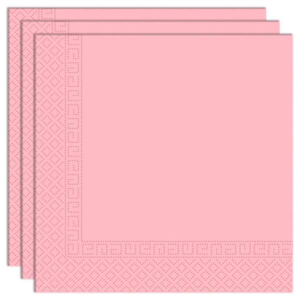 Rosa Servetter Solid Color omfattar ett 20-pack servetter i rosa. Servetterna har tre lager och mäter 33 x 33 cm utvikta.