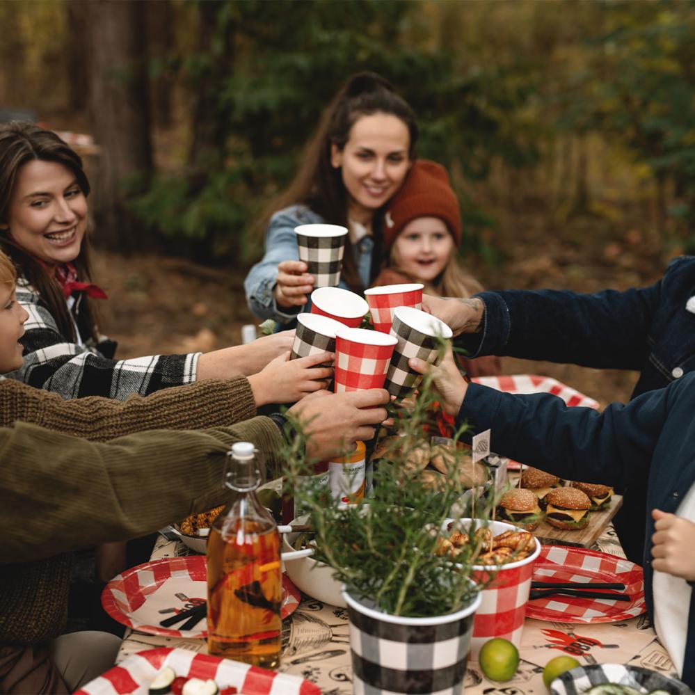 - Engångsmuggar med rutigt motiv