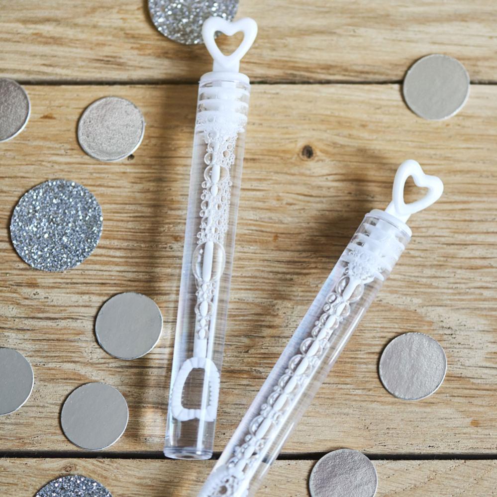 Roliga såpbubblor i fina små flaskor med hjärtan som blir ett perfekt tillbehör till bröllop. Dela ut såpbubblorna bland alla gäster och låt dem fylla hela bröllopet med massor av fina såpbubblor. Såpbubblorna kommer även i ett rejält storpack så du kan vara säker på att det räcker till alla.