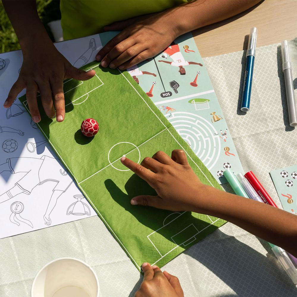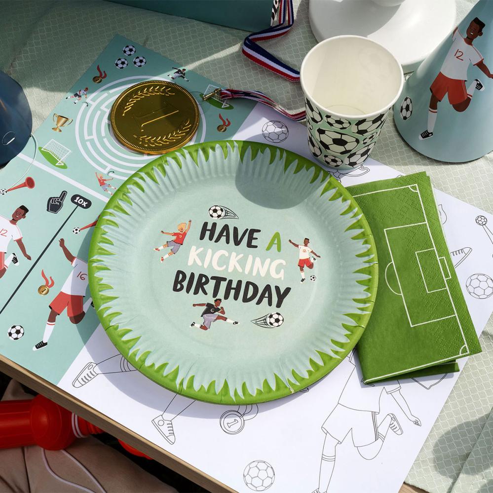 Gör succé på ett barnkalas med fotbollstema med dessa ljusgröna kalasservetter. Perfekta som kalastillbehör för att skapa matchstämning runt bordet och ge festen en sportig känsla av fotboll.