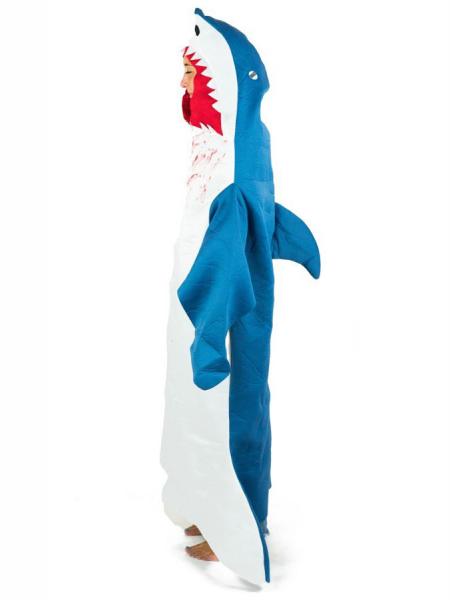 Shark Attack Hajdräkt består av en blå-vit hajdräkt med öppen, blodig mun. Öppningar för armar och ben finns, samt i hajens blodiga gap finns öppning för ansiktet.